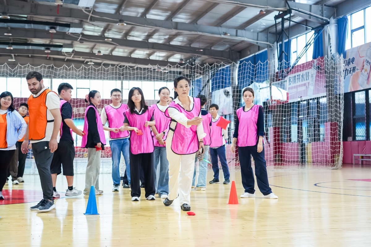 在熱身及破冰后,現場人員分為三隊,依次開展了美式沙包挑戰賽、移花接木和書寫春秋三個趣味團建項目,各隊成員默契配合、互相鼓勵,展現了良好的團隊精神和競技風貌。活動最后,境外員工分享了個人的體會感受。他們紛紛表示,通過此次團建活動,更真切感受到自己是三峽國際大家庭的一員,通過在總部兩個月的輪崗,更深入地了解了三峽的管理文化,與總部建立了更緊密的聯系,他們將在今后的工作中繼續努力,共同鑄就三峽國際更美好的明天。